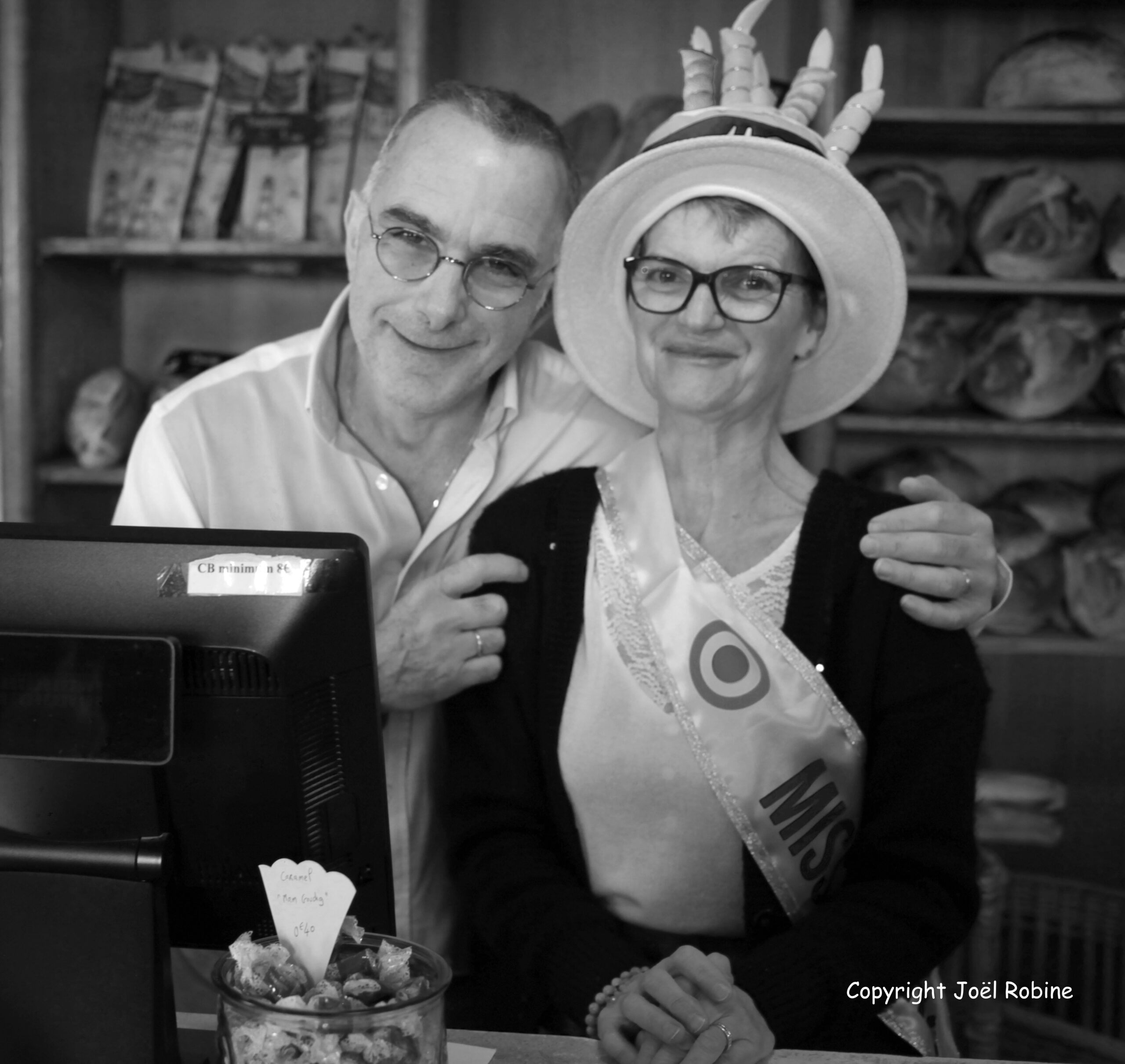En cette fin de matinée du 31 décembre, l’ambiance comme toujours au Moulin à Café est chaleureuse et bon enfant. Quelques habitués finissent leur bière en salle, pendant que le ballet des entrées  et sorties  des clients  repartant, qui avec du pain, qui, un Gochtial, qui, des crêpes ou des galettes, s’interrompt un instant pour saluer ou embrasser une dernière fois  Catherine, souriante, derrière  sa caisse.